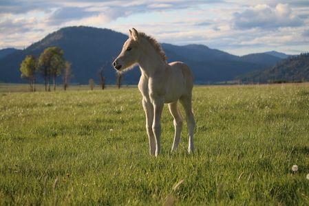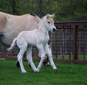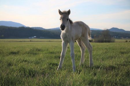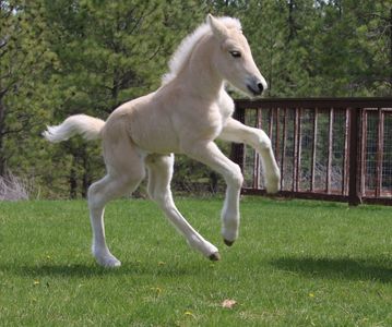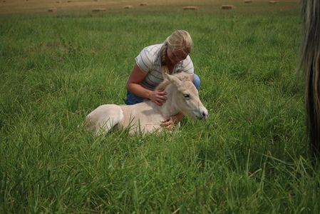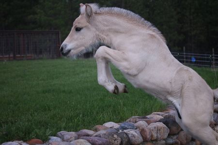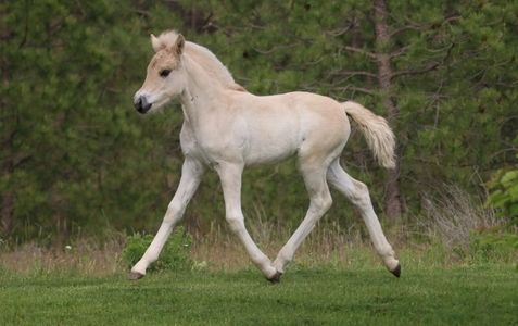Totilas is a foal we were excited about before he was even born! Knowing that we will get a grey dun is one thing, but the cross between Tsjalle and Faski was very promising in regards to movement, disposition and conformation. Totilas is definitely living up to our vision. He is incredibly personable, is built and moves like the perfect baby Fjord. We have named him after Tsjalle's ancestor Totilas and honoring the famous dressage stallion Moorlands Totilas, who passed just recently. DD Totilas has big shoes to fill, but he is already on the right track.