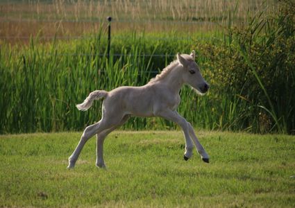 We were looking forward with great anticipation to this foal, especially since we love the cross with Flora's dam, LVG Faksi, and Tsjalle so well. While the result was a bit of a surprise, this little colt has exceeded our expectations! DD Ty - short and adorable- just like the horse itself, has the cutest head we have ever seen on a colt. He is extremely friendly unlike his dam as a foal, and very curious and affectioned. Since Flora is not a big mare, this cutie is the perfect first foal for her and has given us a good idea what she passes on and what not.