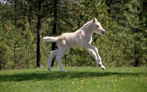 Just in time for our anniversary, DIF Megan (Mogly x DC Lyla by Prydarson), gifted us with a HUGE white dun colt by our stallion Siljar. In honor of our special day, we are naming this handsome man DD Skål!