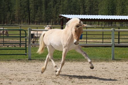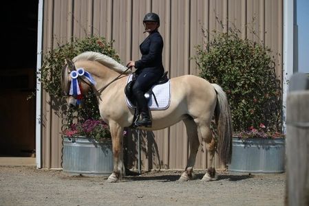 She did phenomenal at her first show at the PNFPG Fjordshow in Sandpoint 2017, placing second with Dan in the Novice Horse English class, third place with Denise in Hunter Hack and also second place in a large halter class out of 13 mares! One month later, she placed second in training level test 2 at the INDA dressage show at Pleasant Valley in Spokane. After weaning her 2018 foal, we entered Greta in two divisions at her very first Hunter Jumper Show and she came away with two Division Championships! We look forward to continuing with Greta's showing and competition career, of course with breaks for breeding and foaling!